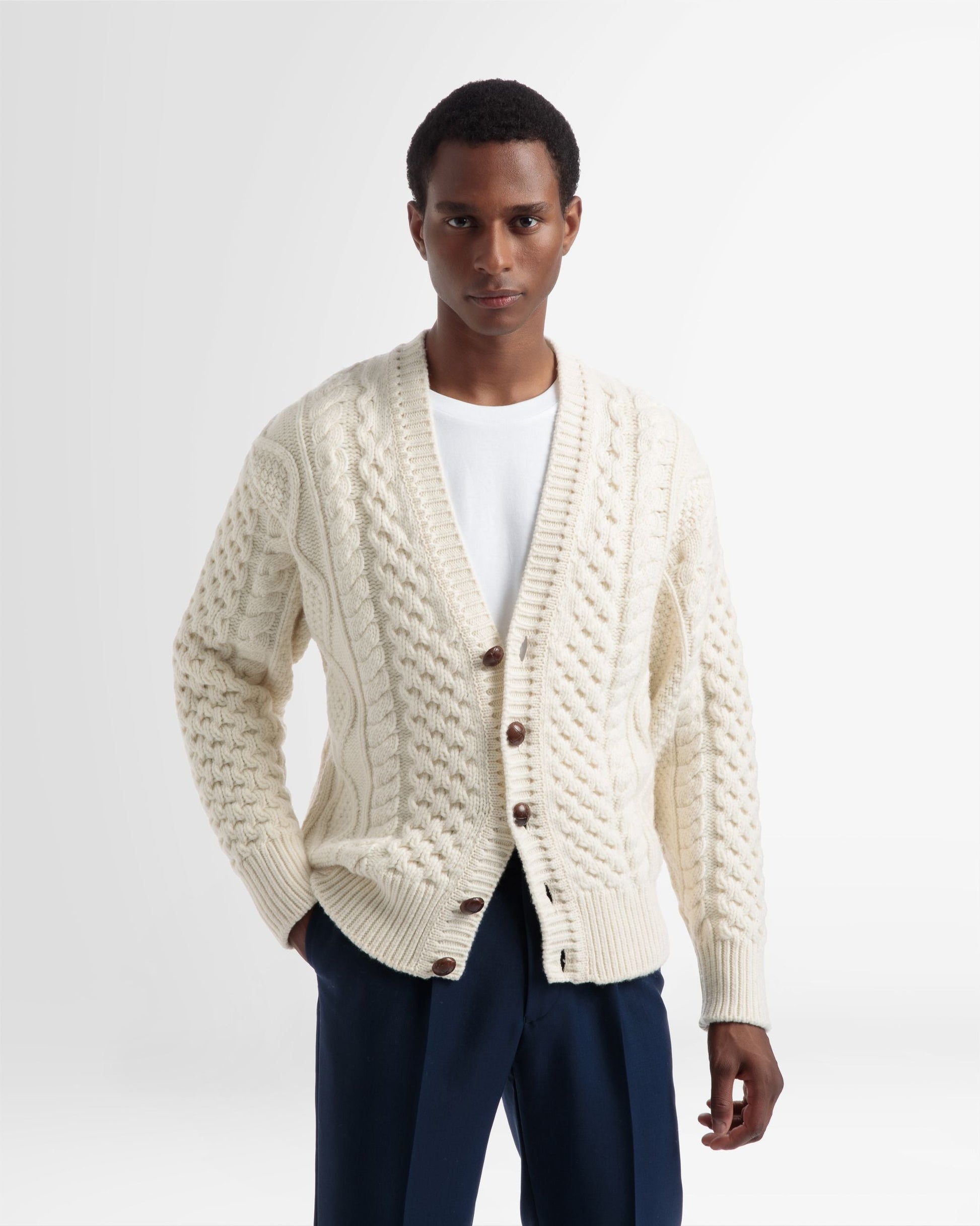 Knitted V-Neck Cardigan In Bone