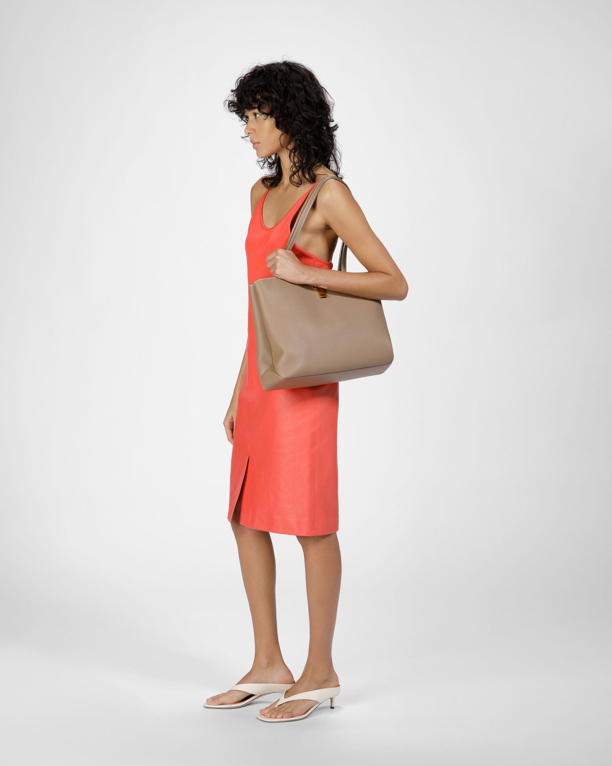 Lock Me Tote Bag In Light Brown Leather