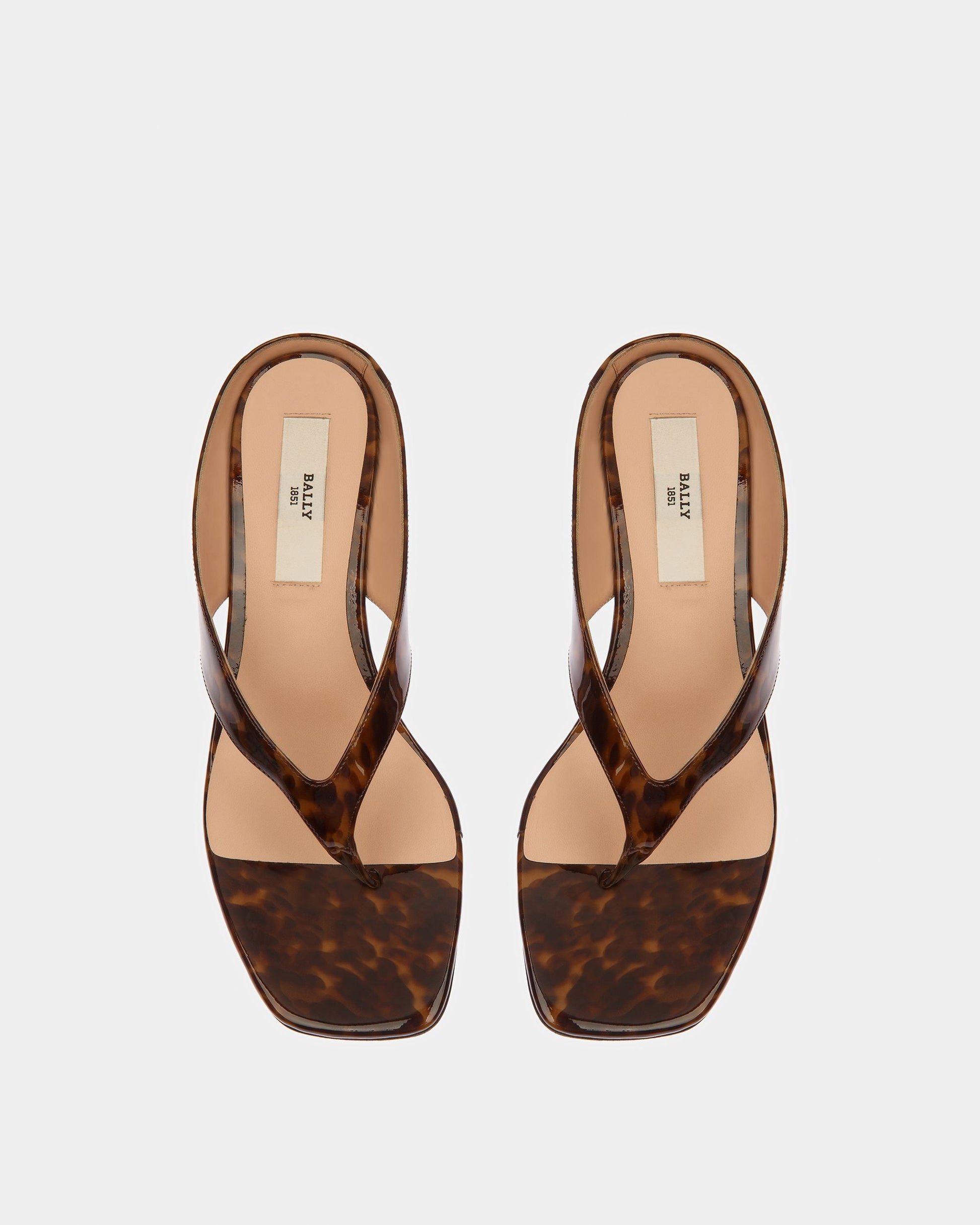 Nyna Leather Sandals In Patent Brown Tortoiseshell