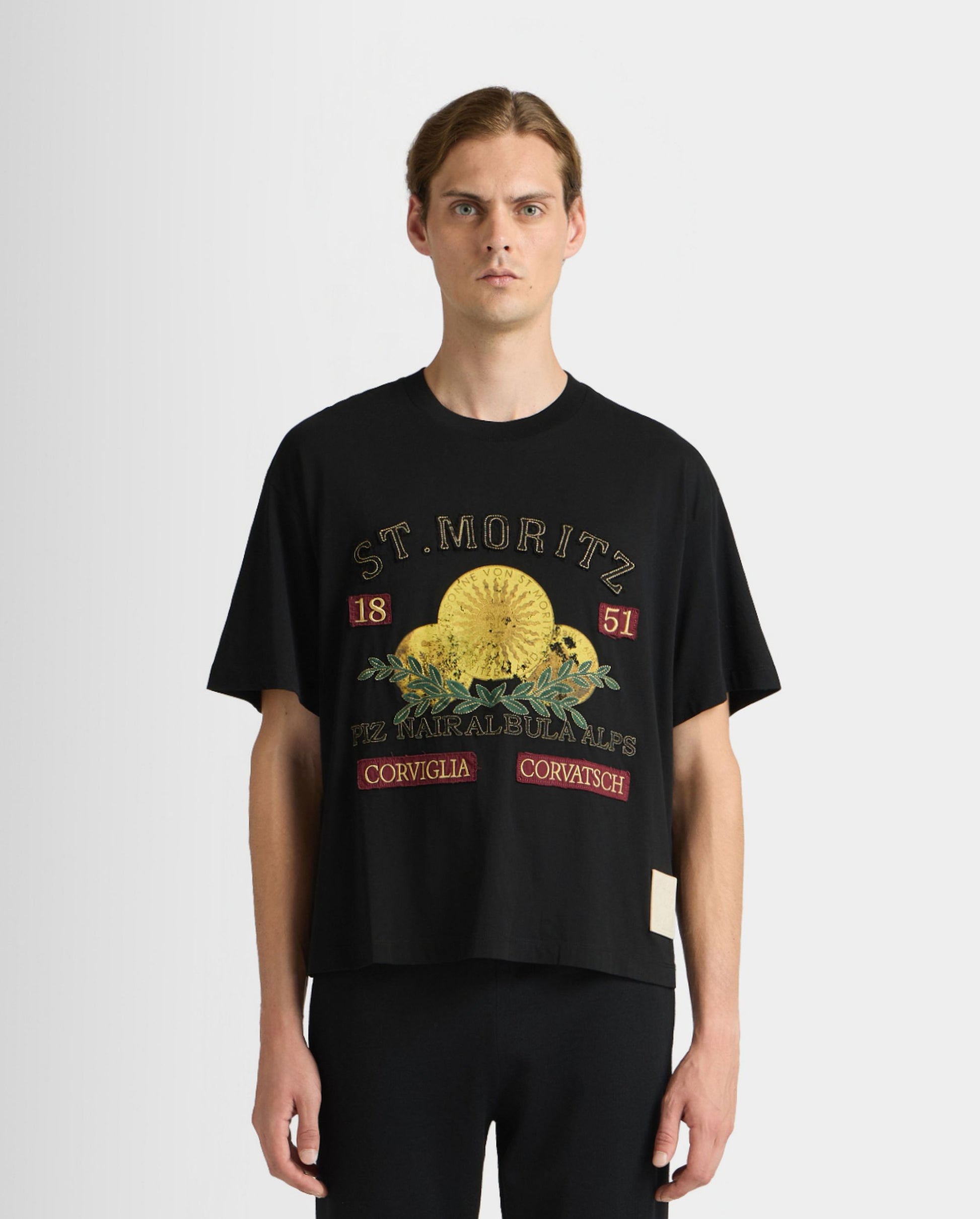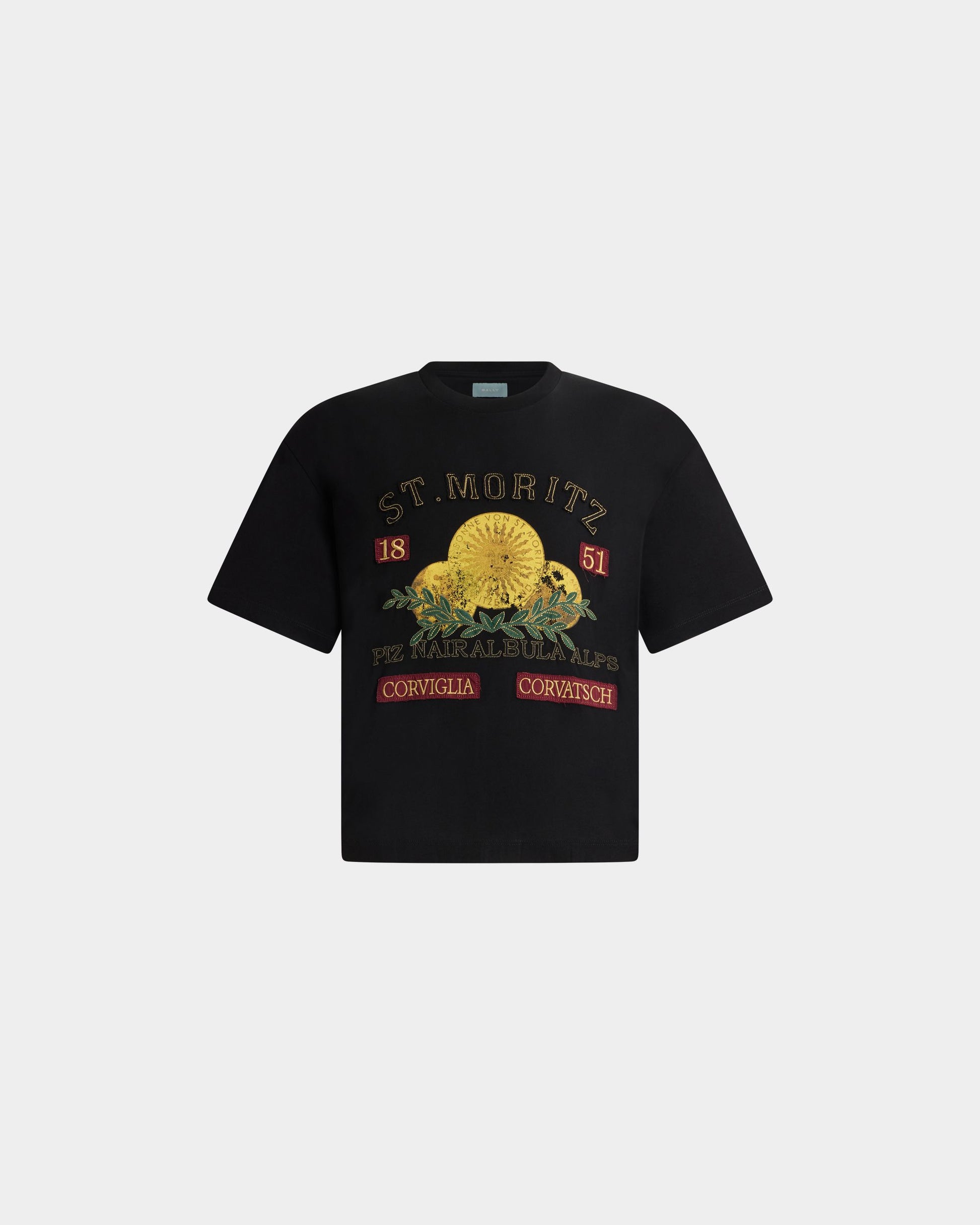 Curling Collection T-shirt in Black Cotton with a St. Moritz Print