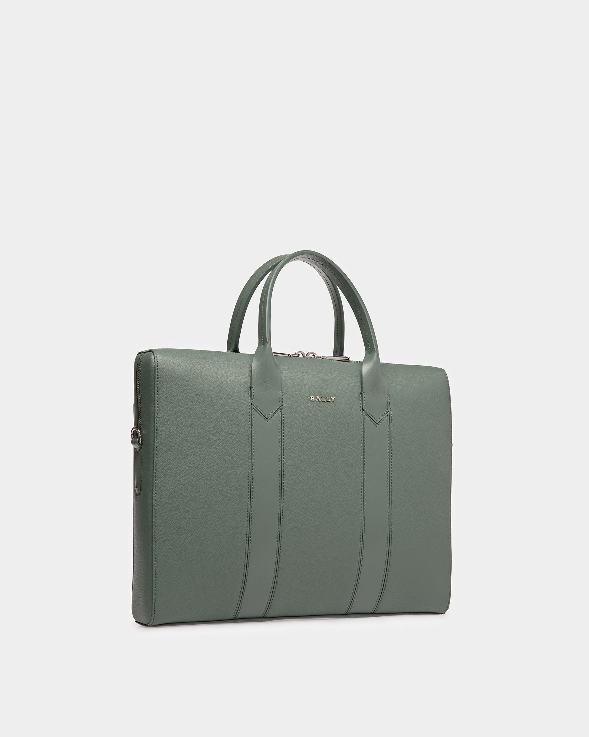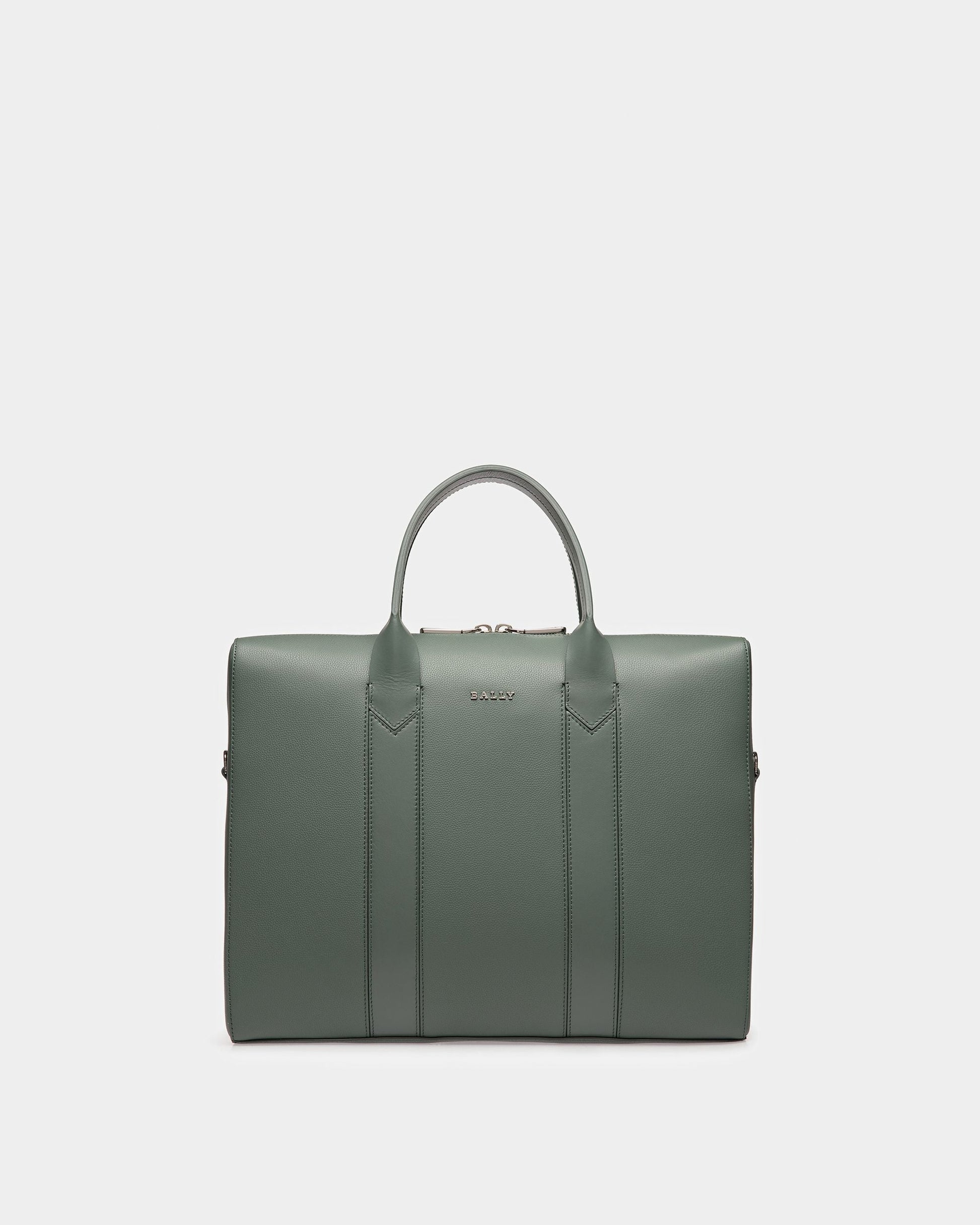 Elter Leather Business Bag In Sage And Palladium